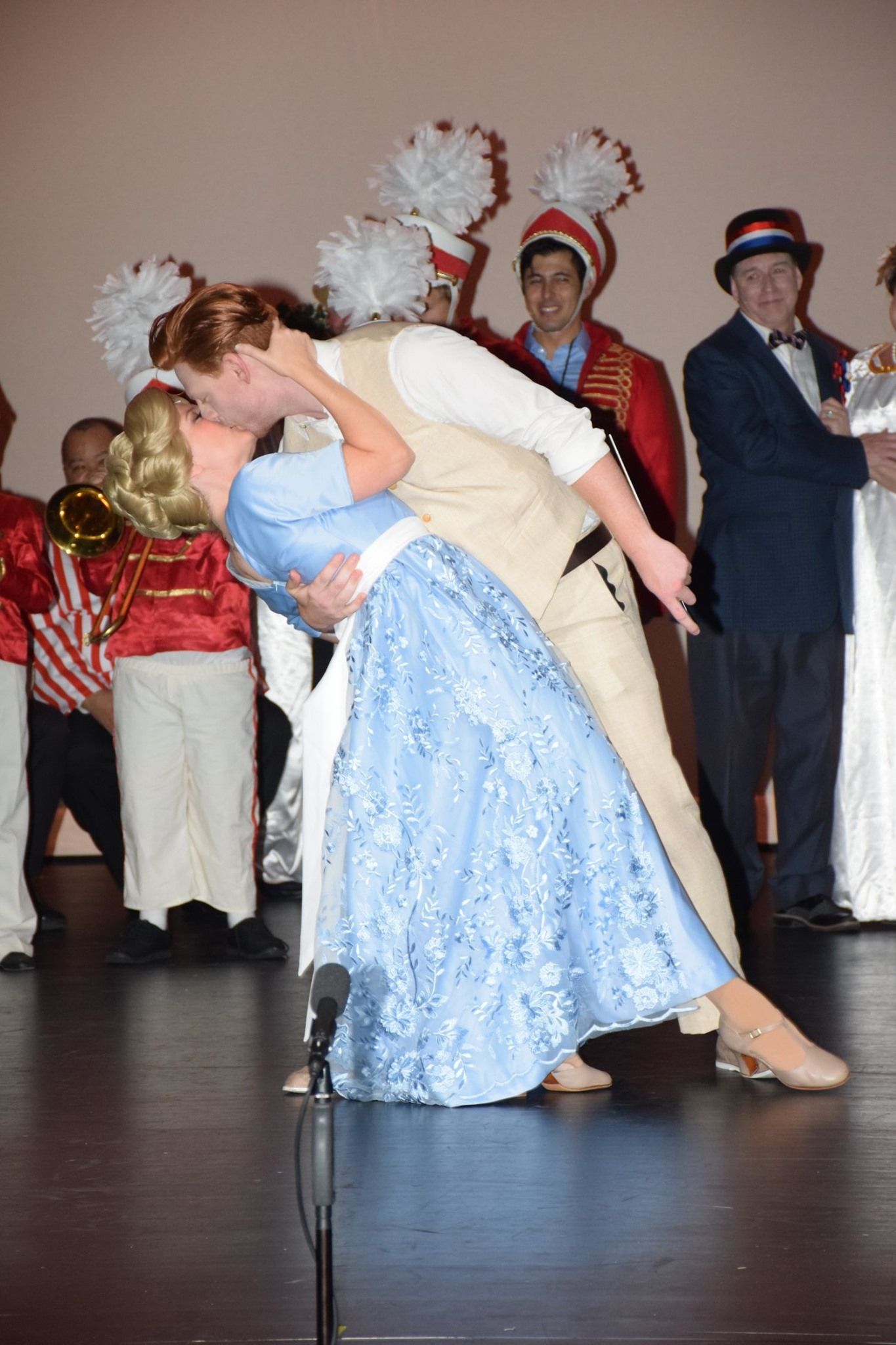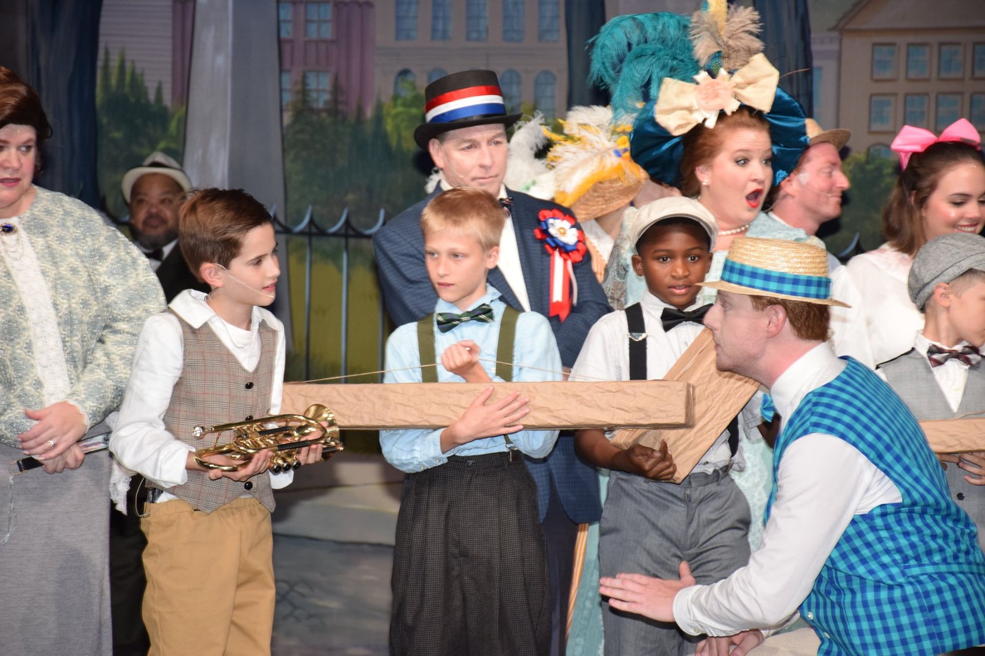 The Music Man follows fast-talking traveling salesman, Harold Hill, as he cons the people of River City, Iowa, into buying instruments and uniforms for a boys' band that he vows to organize – this, despite the fact that he doesn't know a trombone from a treble clef. His plans to skip town with the cash are foiled when he falls for Marian, the librarian, who transforms him into a respectable citizen by curtain's fall.